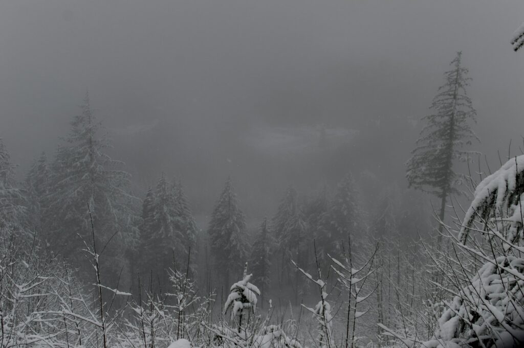 From late fall and onward, low-hanging clouds and fog begin to mask a few of the view sheds. However, fungi and flora begin to replace where there were once wildflowers.